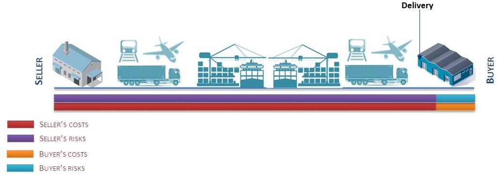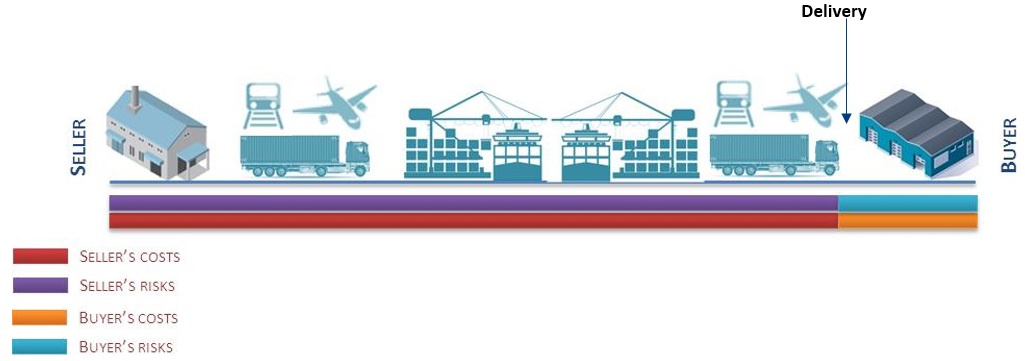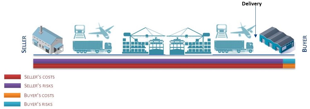 The Seller contracts for and pays for the costs necessary to bring the goods to the named place of destination, agreed between the Seller and the Buyer.