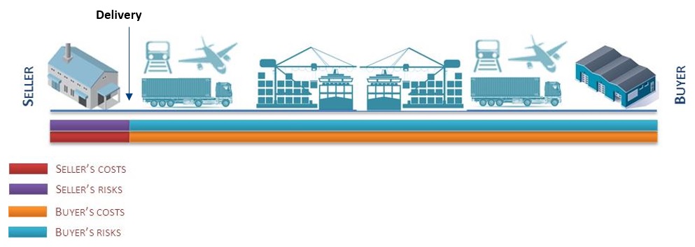 The Seller delivers the goods by placing them at the disposal of the Buyer, for pick-up, at a named place of delivery (e.g. works, factory, warehouse, etc.).